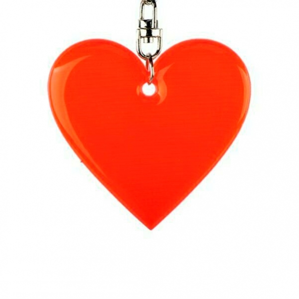 | Brelok z w kształcie serduszka z powłoką odbijającą światło, z karabińczykiem. |