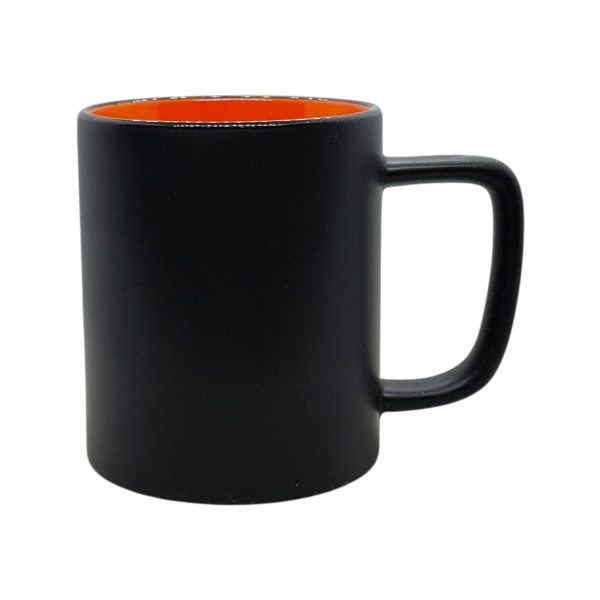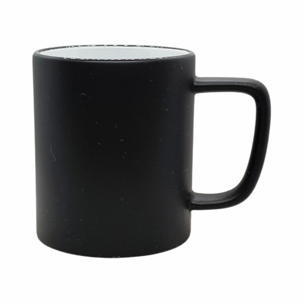 | Matowy kubek o klasycznym, walcowatym kształcie i wygodnym, tradycyjnym uchu. |
